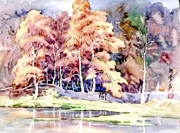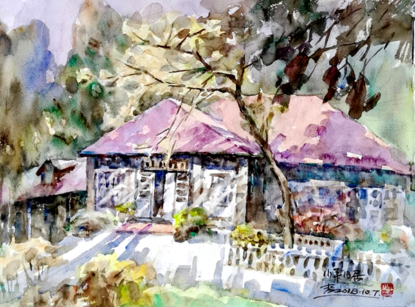 李杏的水彩畫清麗明亮、靈秀灑脫,風景寫生抒情寫意、情景交融,營造了“空山不見人但聞人語響”的深邃意韻,作品充分發(fā)揮和調動了水彩畫的藝術效應,觀后令人難以忘懷。