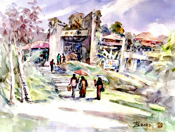 寫生不只是走馬觀花,要真正坐下來畫,有機會我也想去同他一起寫生。除了畫些生活場景外,還要突岀地域特色,希望李杏能堅持下去,會有收獲的。
