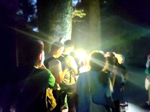 傍晚時分,孩子們跟隨聶建波老師夜游植物園,一邊了解植物園的人文歷史與趣味植物知識,一邊尋找正在蛻殼的蟬,時過立秋,自然中的蟬蛻現(xiàn)象已經(jīng)減少,不過孩子們依然堅持且專注地尋找著,“聶老師,聶老師!這里有一只!”在孩子們的火眼金睛下,兩只蟬蛻先后被找到,可惜只剩下殼,終于在發(fā)現(xiàn)第三只時,拿到蟬的孩子驚叫一聲:“??!它是活的!”孩子都圍過來,爭先恐后想要觸摸它。在聶老師的建議下,孩子們將這只蟬帶回酒店,掛在窗簾上。據(jù)轉(zhuǎn)述,孩子們興奮地觀察蟬蛻殼到一半,就因為時間太晚,被老師強(qiáng)行趕去睡覺了?!皼]關(guān)系,廬山總會讓你們帶一點遺憾離開,吸引著長大后的你們再次上山?!甭犝f了這件事的聶老師頑皮地對孩子們說。