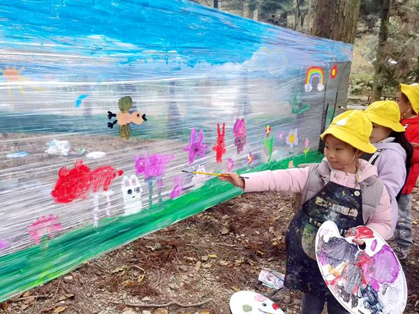 活動結(jié)束前,孩子們還在老師的帶領(lǐng)下宣誓:“我志愿加入環(huán)境保護志愿者行列,從我做起,保護環(huán)境,愛護樹木,珍惜生命,珍視天空,關(guān)愛土地,植綠護綠美麗地球...... ”,并付之于行動,將最美的藝術(shù)留在心間,把集體創(chuàng)造的薄膜畫從樹上解下來帶走,自覺保護起身邊的生態(tài)環(huán)境。
