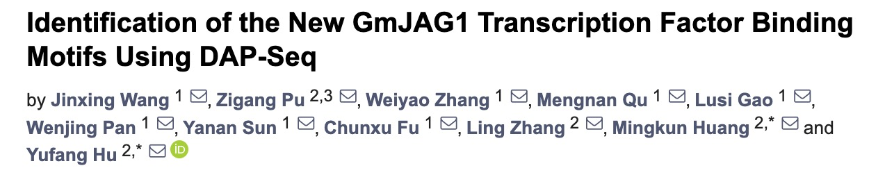相關(guān)研究以“Identification of the New GmJAG1 Transcription Factor Binding Motifs Using DAP-Seq”,在Plants(中科院2區(qū),IF 4.4)上發(fā)表。黑龍江農(nóng)業(yè)科學(xué)院大豆研究所所長王金星為第一作者,江西省、中國科學(xué)院廬山植物園生物信息學(xué)組胡玉芳為論文通訊作者。文章得到黑龍江科技創(chuàng)新計(jì)劃、江西省自然科學(xué)基金的支持。