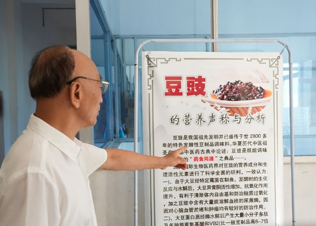 公司負(fù)責(zé)人周江林介紹湖口豆豉的歷史脈絡(luò)與養(yǎng)生功效