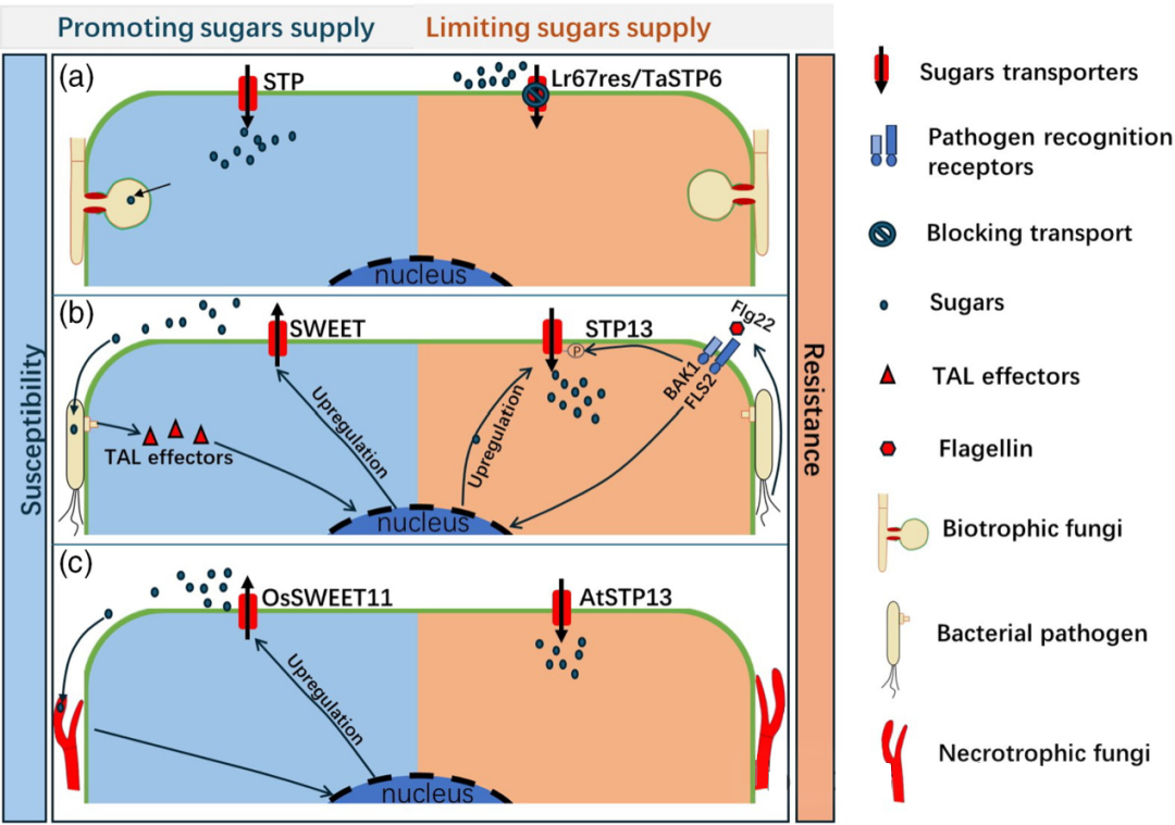 劉小坤團(tuán)隊(duì)在植物學(xué)權(quán)威期刊《Plant Biotechnology Journal》發(fā)文綜述植物-病原菌拮抗操控糖轉(zhuǎn)運(yùn)蛋白競爭糖類的研究進(jìn)展