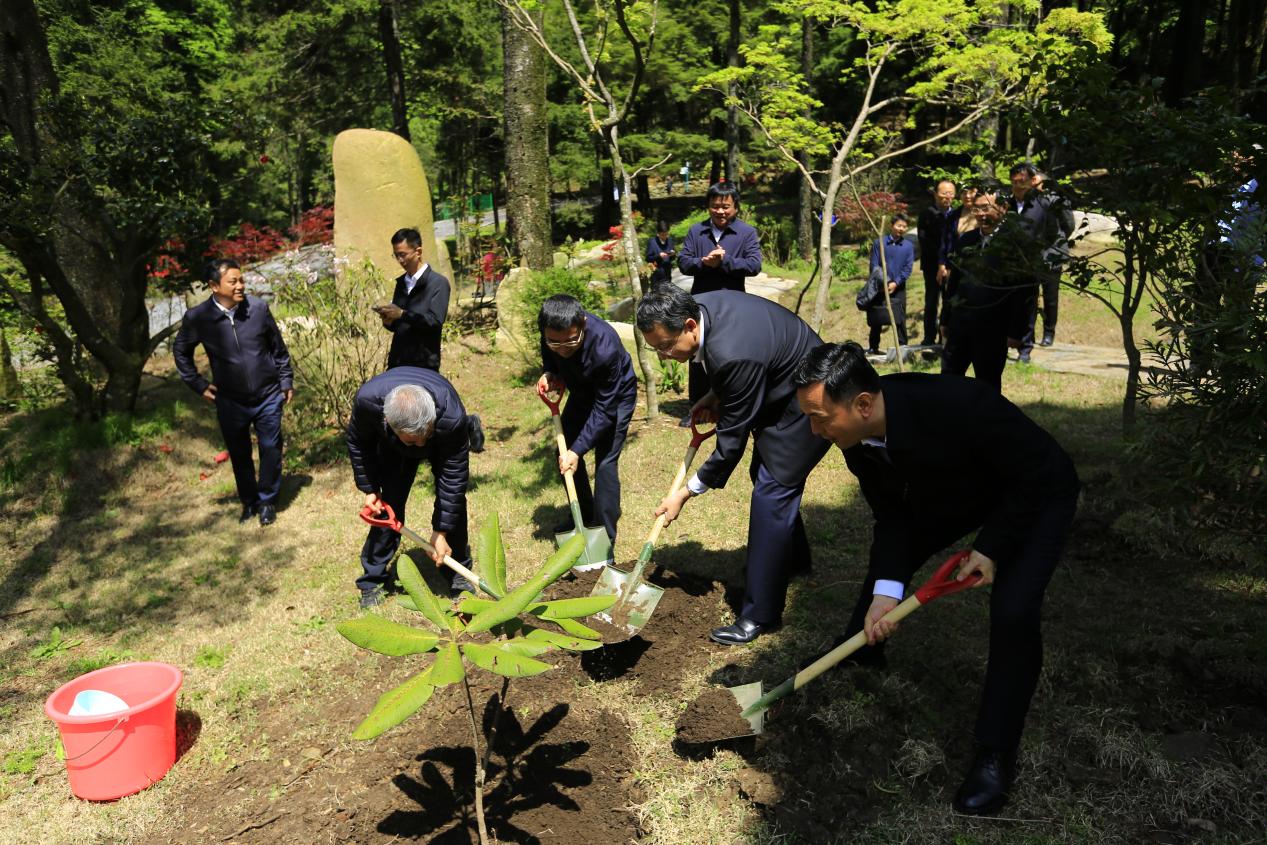 調(diào)研期間,關(guān)局長一行在名人名樹園親手種下廬山植物園繁育的珍稀植物小溪洞杜鵑。