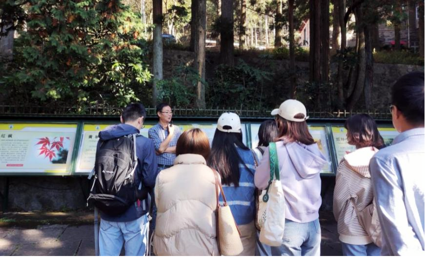 上午,在環(huán)境教育部的帶領下,今年新入職的26名博士、碩士研究生實地考察了我園的特色專類園,介紹了我園種質資源的收集情況及特色專類園的布局等,讓大家直觀了解了我園的植物資源保育現(xiàn)狀及人文文化。