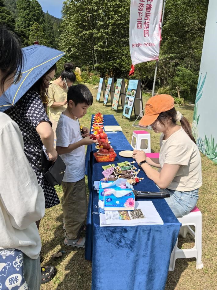 現(xiàn)場不僅“好玩”,還兼顧了“好吃”,“味蕾與番茄的邂逅”嘗鮮試吃活動,展示了色澤鮮艷、味道清甜的番茄新品種。大家親自品嘗這些由廬山植物園重點實驗室科研人員培育的番茄,體驗其獨特的口感和風味。試吃活動不僅讓游客們感受到科研成果的實際應(yīng)用,還讓他們認識到植物科學在提升食品質(zhì)量和豐富飲食文化方面的重要性。