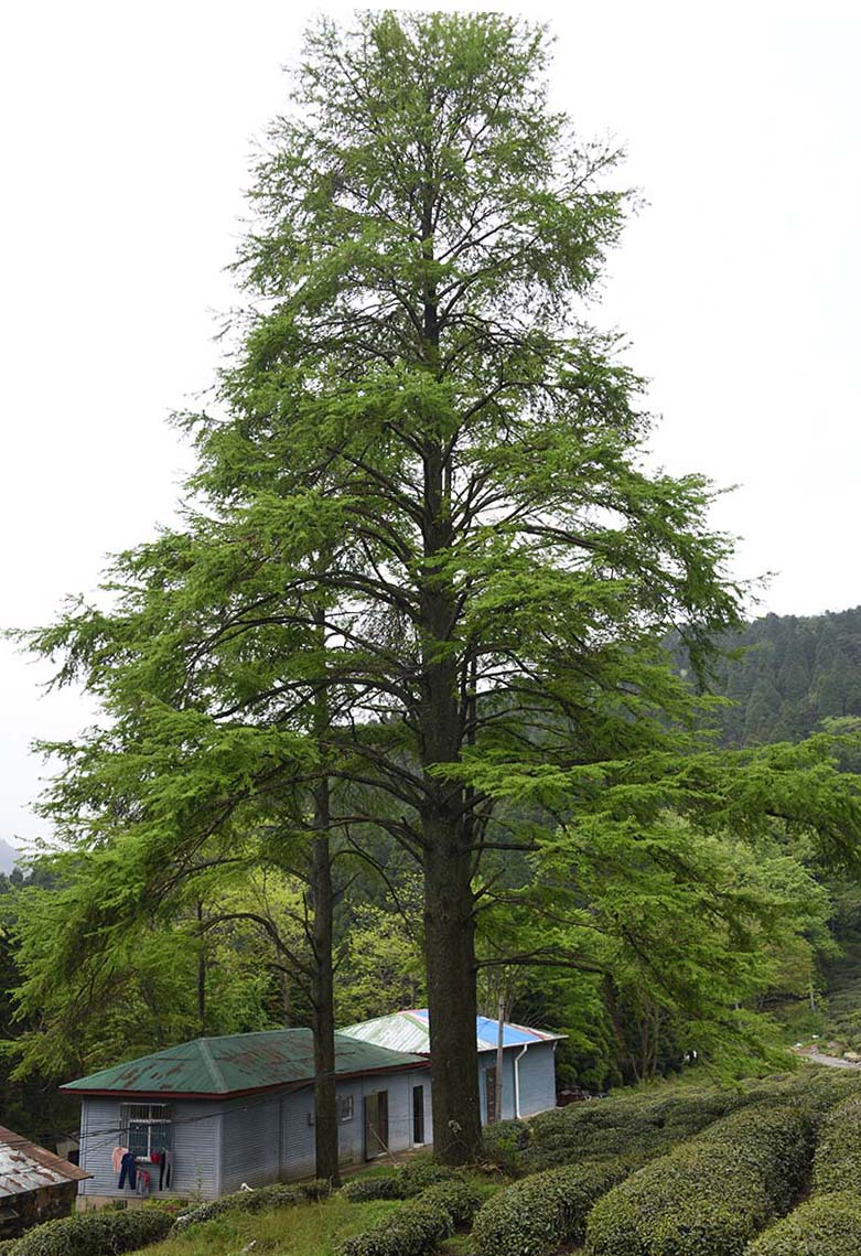 種群現(xiàn)狀:目前江西僅在廬山有野生分布,其余各地為栽培。最早在江西采集到金錢松標本的是Y.Tsiang在1932年黃龍寺附近采得的,因年代久遠很難確定該處金錢松是否為野生或栽培,現(xiàn)今黃龍寺附近古樹參天,生長環(huán)境已趨于野生狀態(tài),生長狀態(tài)良好。