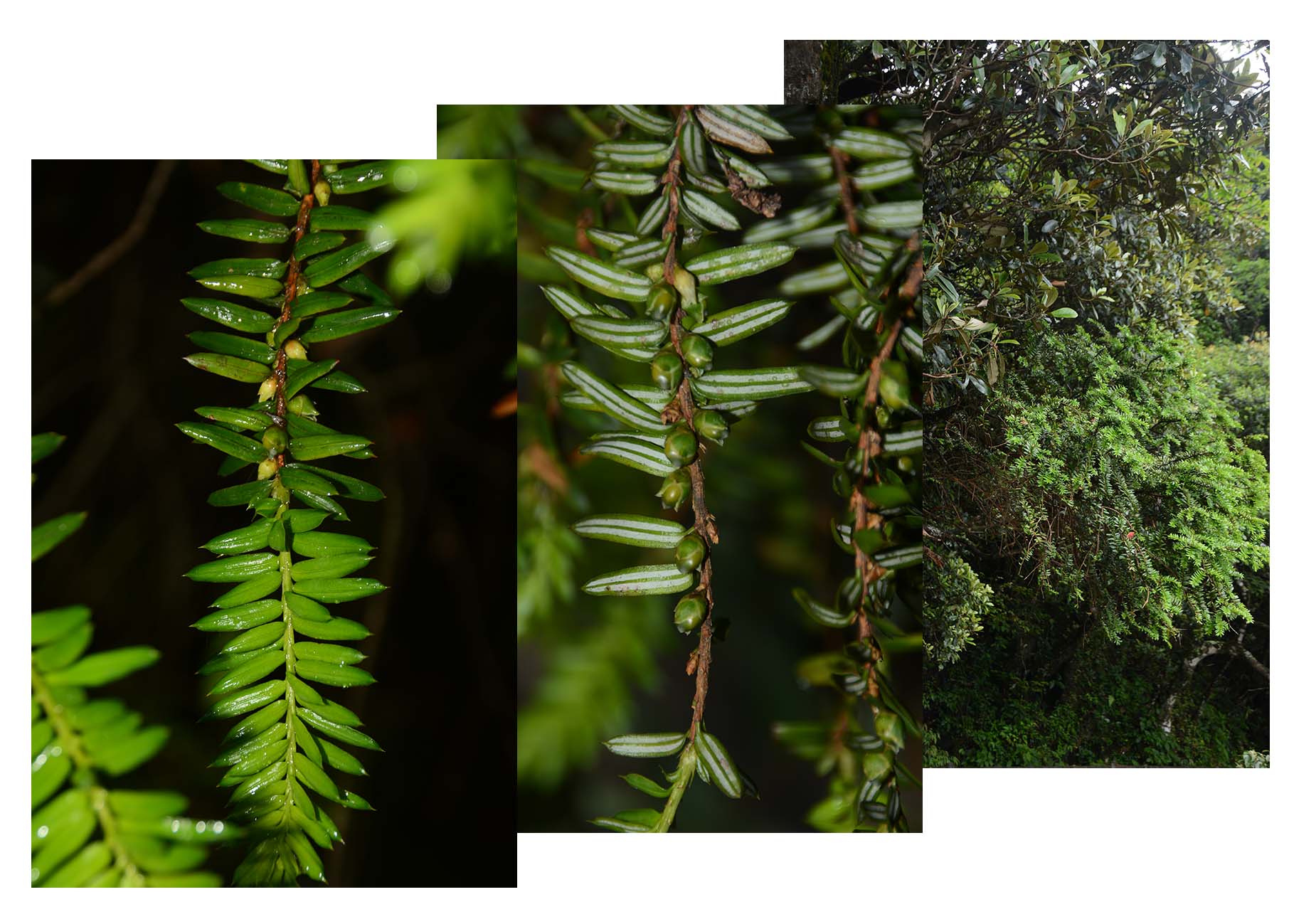 識別要點:灌木;葉直,先端刺尖,背面具兩條寬的白色氣孔帶;具白色假種皮。