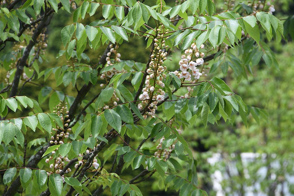 形態(tài)特征:喬木,高10-20m;樹皮灰白褐色。羽狀復(fù)葉,總軸有疏短柔毛或無毛;小葉5-8對,紙質(zhì)或革質(zhì),葉長橢圓形,基部多少偏斜,長6-26cm,寬3-9cm,全緣,葉面無毛,葉背粉綠色或灰白色,有短柔毛;葉脈在葉背明顯,側(cè)脈8-15對?;ㄐ蜷L20-36cm;總花梗、花梗、花萼外面有棕色短絨毛;花淡紅色。果橢圓球形,近球形或闊卵形,被柔毛;種子橢圓球形,平滑,成熟時(shí)長約1.8cm,直徑約1.3cm?;ㄆ?/span>3-9月,果期5月至翌年4月。