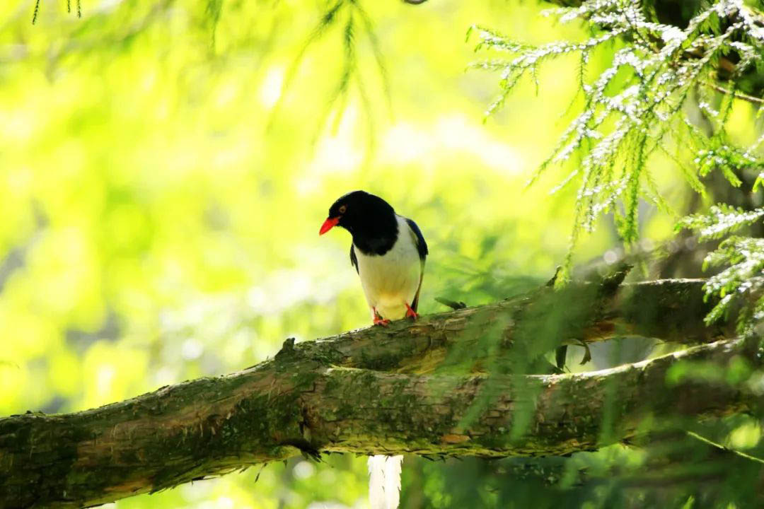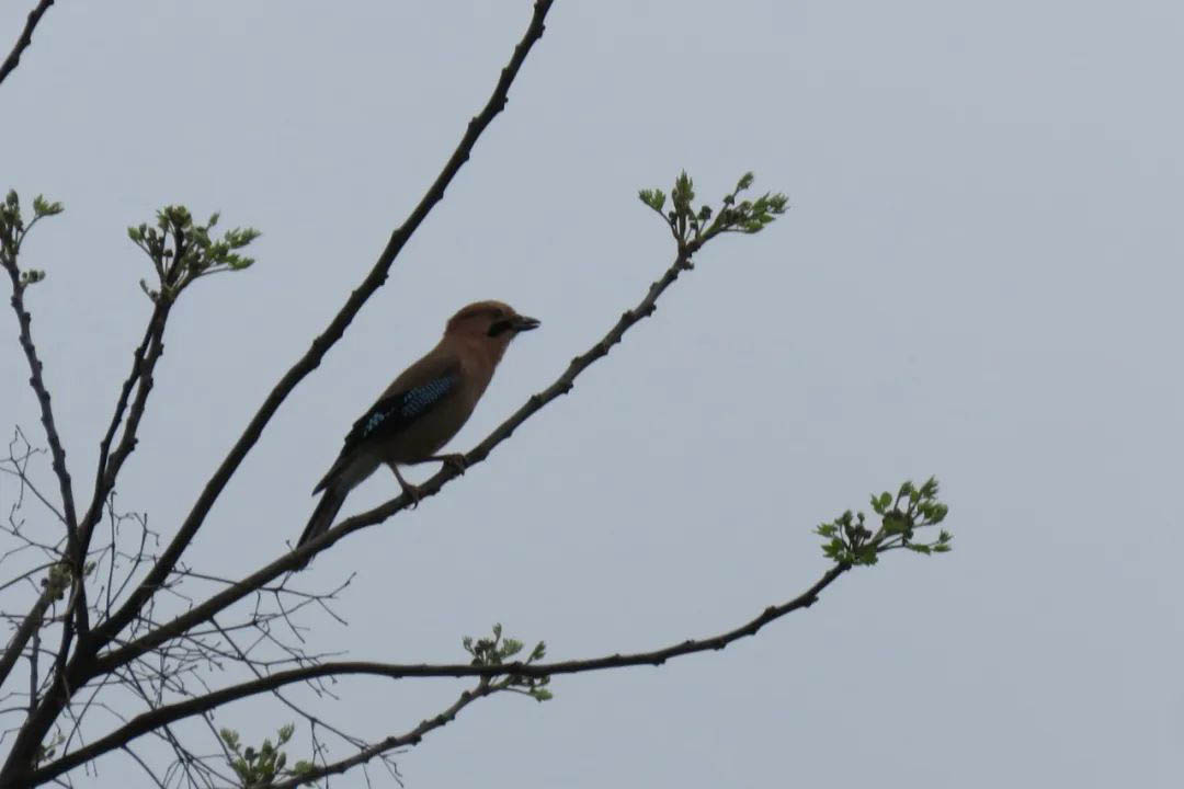 紅嘴藍鵲是植物園中的???,這些鳥兒經(jīng)常成群結(jié)隊在樹冠和地面覓食,它們發(fā)出的聲音粗啞而吵鬧。極長的尾羽和鮮紅的喙是它們的最大特點。與許多鴉科鳥類相似,紅嘴藍鵲是具有很強的社會性的群居鳥類,能夠聯(lián)合起來抵御捕食者。紅嘴藍鵲 (Urocissa erythroryncha)而同為鴉科的松鴉則相對低調(diào),它們通常隱藏在樹冠之中,偶爾發(fā)出粗礪的叫聲。松鴉還能模仿其他鳥類的叫聲,這使得它們在森林中更添神秘。它們最著名的習性是在秋季會埋藏殼斗科櫟屬、水青岡屬以及樺木科榛屬植物的堅果,作為未來的食物儲備。由于一部分堅果沒有被食用并最終萌發(fā),松鴉在這些植物的種子傳播、尤其是長距離傳播中扮演了不可或缺的角色,對維持森林生態(tài)系統(tǒng)的健康與多樣性具有重要影響。松鴉 (Garrulus glandarius)