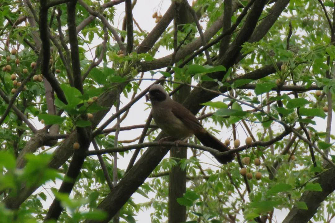 在植物園中,最吵鬧的鳥類大概是黑臉噪鹛(méi)和白頰噪鹛這對噪鹛科的兄弟了。正如它們名字中的“噪鹛”所暗示的,這兩種鳥類發(fā)出的叫聲既響亮又嘈雜。它們是典型的群居鳥類,常常一大群聚在一起,不停地鳴叫,也都喜歡在地面和灌叢里覓食。黑臉噪鹛 (Pterorhinus perspicillatus)