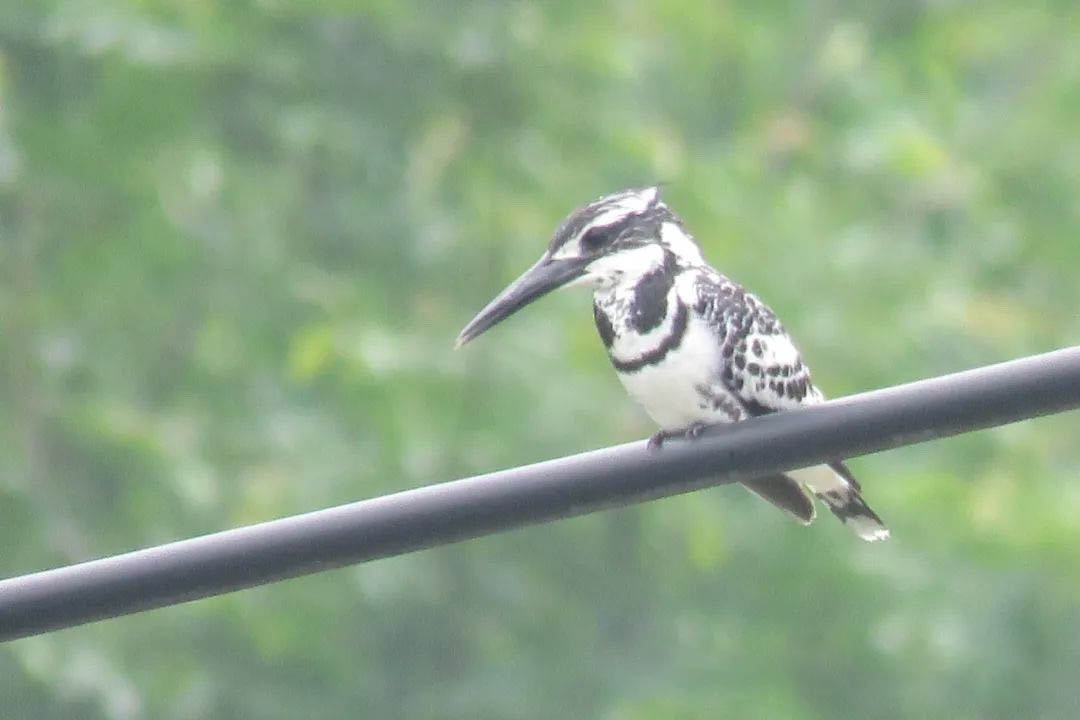 除了樹林、灌叢和草地,植物園內(nèi)的兩個小湖也是多種鳥類的棲息地,各種翠鳥和水鳥可在這里見到。其中,黑白相間的斑魚狗以其高超的飛行技巧而著稱,它們常在湖面上空盤旋甚至進行空中懸停以偵察下方的獵物,一旦鎖定目標便會迅速俯沖入水捕食魚類。此外,白胸翡翠和較為罕見的藍翡翠也可見于這些湖泊周圍,它們會停息在湖邊的樹枝或電線上,伺機捕捉魚類或其他小動物。兩種翡翠的食譜非常廣泛,有記錄顯示白胸翡翠甚至會捕食其他小鳥。斑魚狗 (Ceryle rudis)