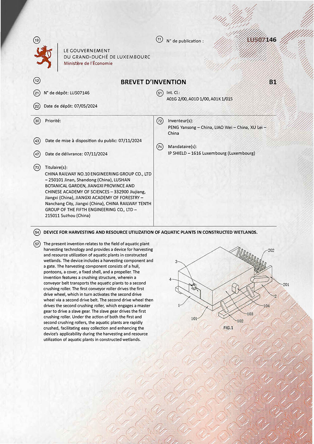 DEVICE FOR HARVESTING AND RESOURCE UTILIZATION OF AQUATIC PLANTS IN CONSTRUCTED WETLANDS