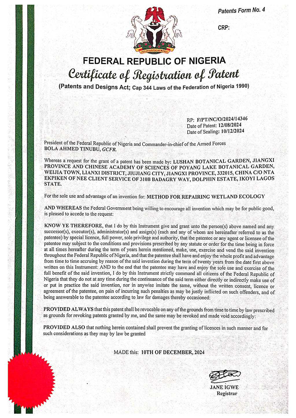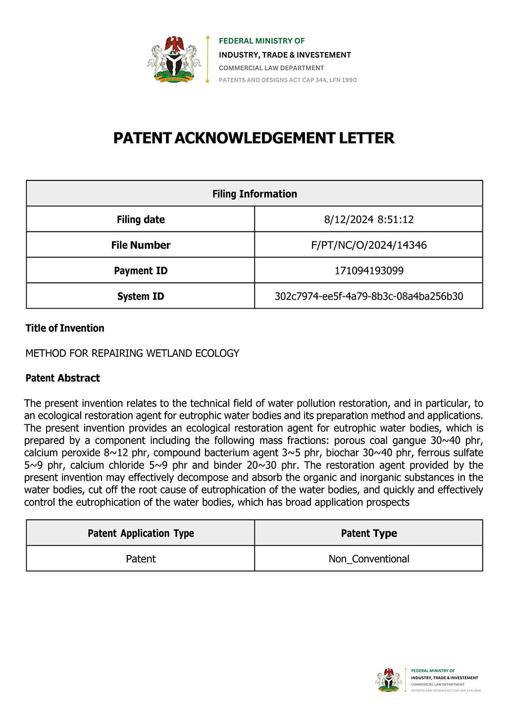 | 證書號(hào): | F/PT/NC/O/2024/14346 |