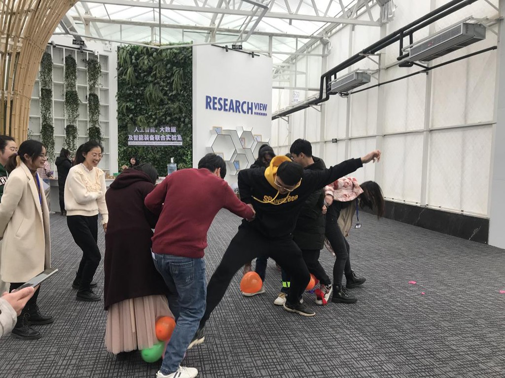 活動(dòng)伊始,大家進(jìn)行自我介紹,此環(huán)節(jié)大家還略帶靦腆和生疏,而在其后的游戲環(huán)節(jié)氣氛不斷輕松愉悅。包含了交換名字回答問(wèn)題、齊頭并進(jìn)、喊數(shù)抱團(tuán)、拍7令、兩人三足踩氣球等游戲,內(nèi)容豐富多彩,既有娛樂(lè)性又有競(jìng)技性,每組游戲的獲勝者和團(tuán)隊(duì)也獲得了盲盒獎(jiǎng)品。