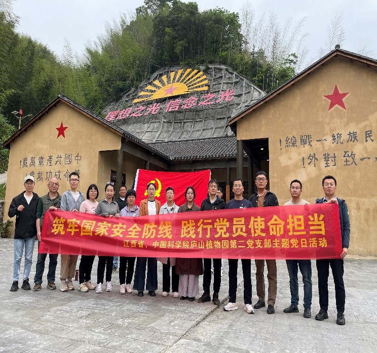 當(dāng)日下午,廬山植物園副主任、第二黨支部書記彭焱松代表園黨委帶領(lǐng)支部黨員干部赴贛北岷山革命根據(jù)地開展了戶外實(shí)踐學(xué)習(xí)?;顒蝇F(xiàn)場,支部黨員干部參觀了中共贛北工委舊址,瞻仰了岷山革命烈士紀(jì)念塔,緬懷了革命烈士。彭主任指出,我們贛北也是一片紅土地,當(dāng)年的革命先輩有的舍下家小、有的來自千里之外的外省、有的尚未成家,平均年齡不超過30歲,他們都是一群最年輕最鮮活最可愛的生命,他們?yōu)榱死硐霝榱诵拍顚⒆约旱那啻汉蜔嵫x予了這片土地,我們今天的黨員干部要一定且必須牢記國家的安全和平來之不易,要深刻領(lǐng)會學(xué)習(xí)并踐行國家安全觀的核心要義。彭主任強(qiáng)調(diào),國家安全意識離我們并不遠(yuǎn),現(xiàn)在正值春夏之交,山野田間就有好多重要的植物種質(zhì)資源;彭主任隨手采摘了幾顆路邊的蓬藟果實(shí),讓大家都嘗一嘗,鮮紅透亮的野果,大家覺得吃起來酸甜可口,非常不錯,適合挖掘開發(fā)為新型水果。彭主任借此給我們講了一堂關(guān)于國家安全警示教育的微課堂,誠摯的告誡大家,植物種質(zhì)資源是我們國家安全中生物資源安全的重要組成部分,直接關(guān)系國計民生,僅僅在岷山這個小小的鄉(xiāng)鎮(zhèn)地界及周邊內(nèi)除了像薔薇科的蓬藟等野生水果資源之外,我們還發(fā)現(xiàn)了八角蓮、中華水韭等國家重點(diǎn)保護(hù)植物野生群落,這些都是我國非常寶貴的植物資源,我們在平時科研、交流、報告等工作中要切實(shí)提高自身的生物資源安全警惕意識,防止我國的各類優(yōu)質(zhì)生物種質(zhì)資源的流失、盜采、盜伐等行為的發(fā)生,筑牢黨員干部就是國家安全防線的理念。