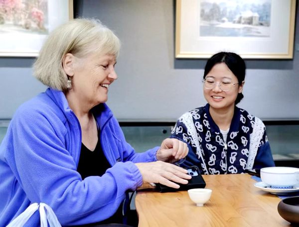 雙節(jié)期間,畫展還迎來了一位來自加拿大的白雅麗(中文名)女士,她現(xiàn)在是一名浙江的英語老師,此次來廬山玩,巧遇李杏先生水彩畫展,興奮地與現(xiàn)場工作人員討論了她對植物科學傳播與文化藝術相結合的一些觀點,同時與畫家李杏交流并收藏了《典蔵廬山》。臨走時她還表示:通過觀賞這次的畫展,她已經喜歡上了廬山的雪景,如果有機會,一定要冬天再來廬山,親眼看看這美麗的雪景。