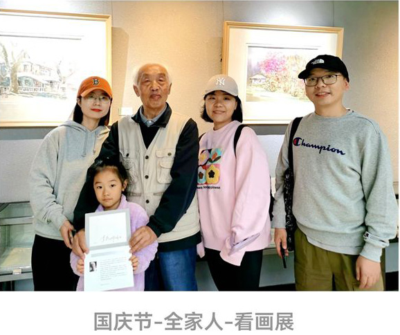 恰逢雙節(jié)小長假,很多舉家出游前來觀展,無論是家長還是孩子都對畫作發(fā)出了贊嘆:“自然與藝術結合,給人雙倍美的愉悅!”聽聞畫家本人也在的時候,紛紛感嘆這一趟真是不虛此行。李杏老先生也感慨,很少和家庭游覽者面對面交流,愉快地與觀展者留下了珍貴的合影。