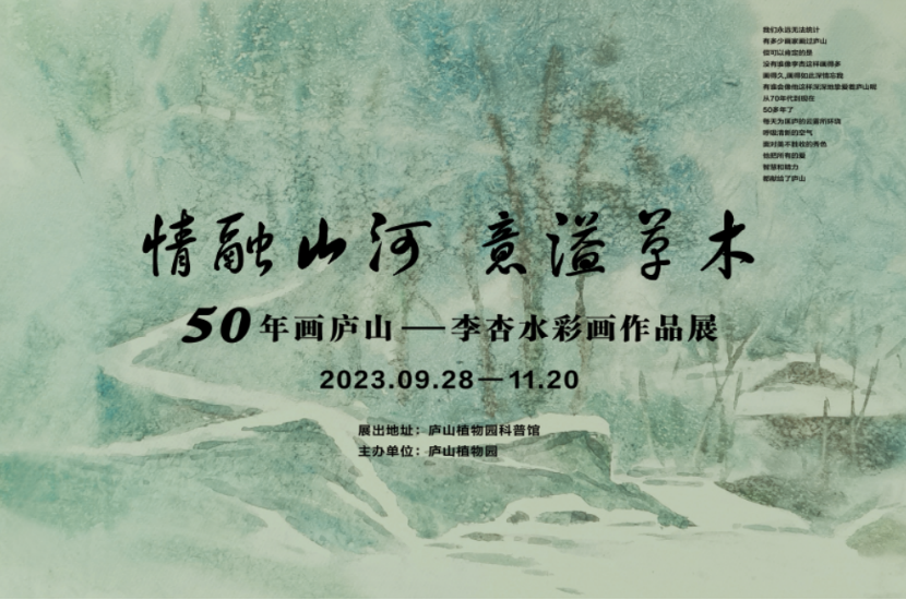 —情融山河 意溢草木——50年畫廬山,李杏水彩畫作品展圓滿成功 他的水彩點染著廬山繽紛四季,他的丹青藏掖著廬山人兒時的孩提回憶,那時...2023-11-10