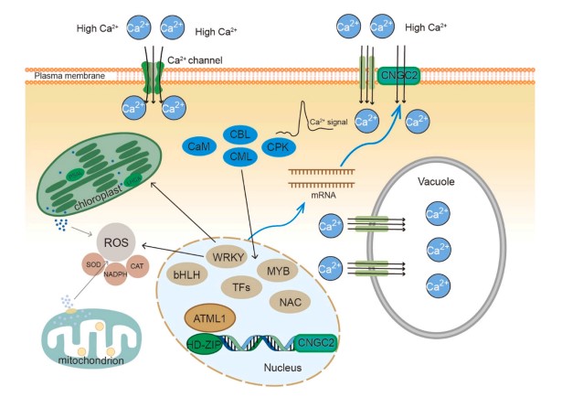 牛耳朵響應高鈣脅迫的分子機制模式圖