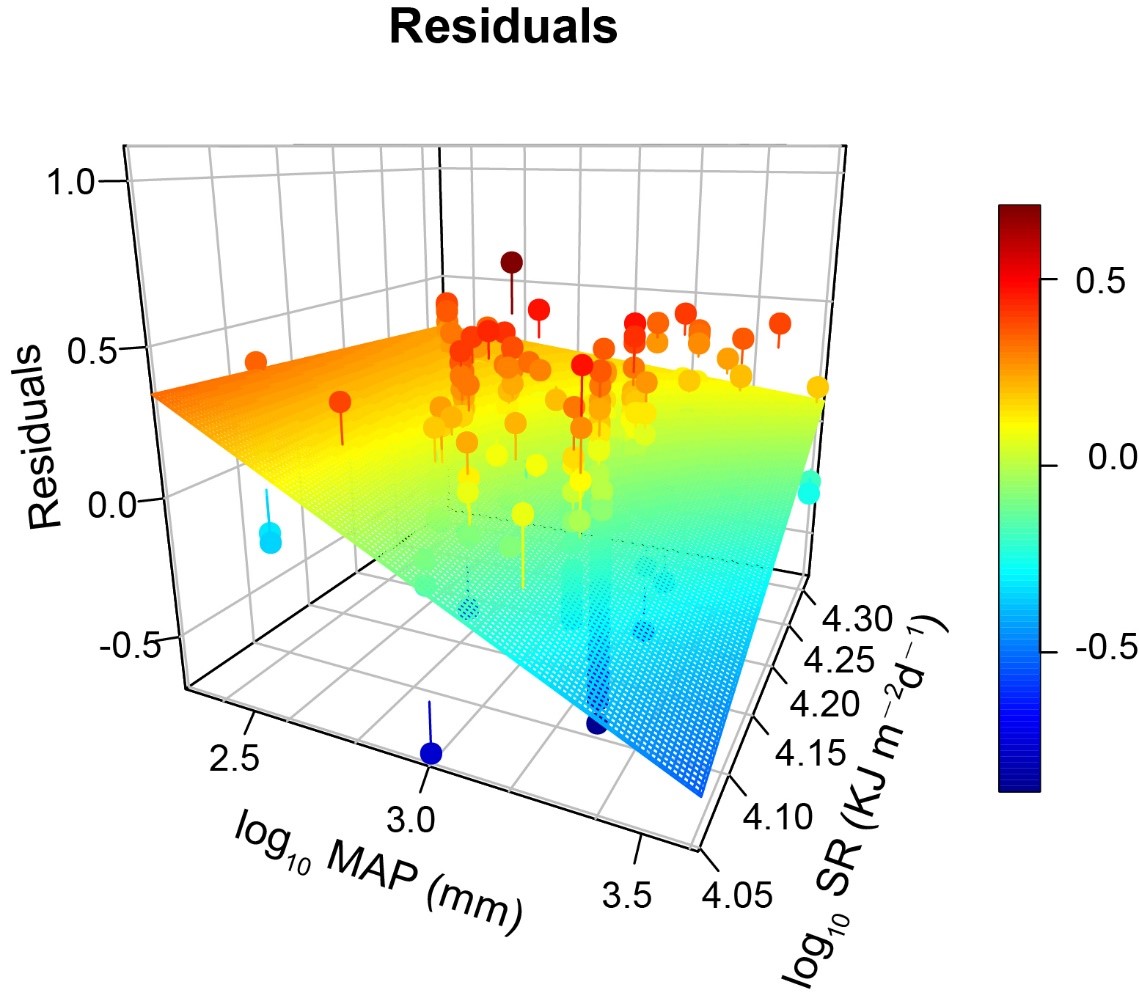 江西省、中國(guó)科學(xué)院廬山植物園生態(tài)系統(tǒng)生態(tài)學(xué)研究組與中國(guó)科學(xué)院華南植物園植物生理生態(tài)研究組合作建立了包含全球81個(gè)樣地362種被子植物葉片水力性狀的數(shù)據(jù)庫(kù),基于多種模型,研究發(fā)現(xiàn),在全球尺度下,被子植物葉片水力效率和安全性之間存在一個(gè)顯著但是微弱的權(quán)衡關(guān)系,植物生長(zhǎng)區(qū)域的陽(yáng)光輻射和降水條件交互驅(qū)動(dòng)了權(quán)衡關(guān)系的變化。生長(zhǎng)于高陽(yáng)光輻射和低降水區(qū)域的植物通常有較高的葉片水力效率和安全性,而生長(zhǎng)在高降水且低陽(yáng)光輻射環(huán)境條件下的植物有更低的水力效率和安全性。同時(shí),生長(zhǎng)在高陽(yáng)光輻射和低降水區(qū)域的植物可以通過(guò)增加葉片的比葉重、葉脈密度以及植物的滲透調(diào)節(jié)增強(qiáng)葉片水力安全性但不影響水力效率,從而改變?nèi)~片水力策略,幫助植物在特定的棲息地生存。