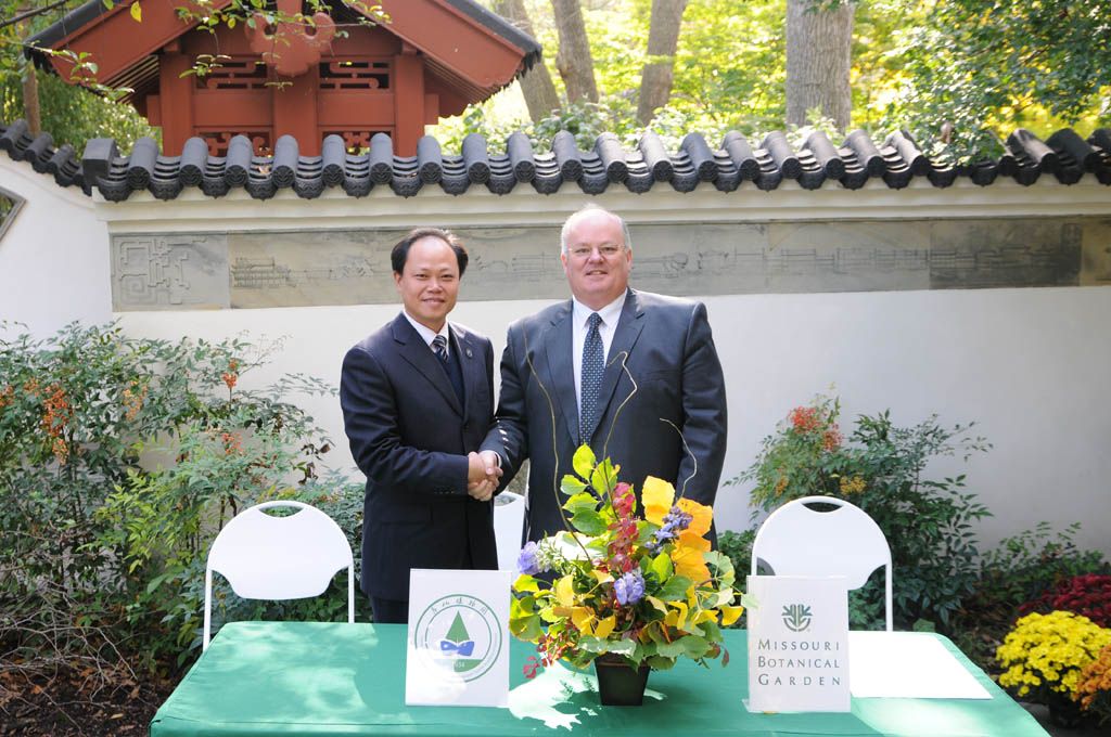 2011年10月26日至11月1日,黨委書記吳宜亞同志、副主任張樂華研究員應邀出訪國際著名的美國密蘇里植物園(Missouri Botanical Garden)、長木植物園Longwood Gardens)和紐約植物園(New York Botanical Garden)。此次出訪領導還有中科院江蘇植物所所長莊娛樂研究員、標本館館長劉啟新研究員、辦公室副主任李梅博士,中科院廣西植物所所長文永新研究員、副所長韋霄研究員和所長助理熊忠臣副研究員。美方高度重視我方代表團的到訪,對整個行程進行了周密細致的安排。