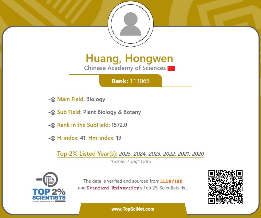 黃宏文研究員榮登2025年“全球前2%頂尖科學家”榜單