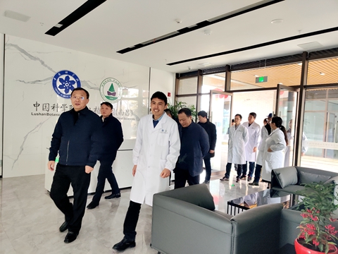 郭毅一行來到了我園南昌溪霞分園科研中心(暨南昌植物園科研中心)。溪霞分園負(fù)責(zé)人胡偉明博士詳細(xì)介紹了科研大樓裝修、科研人員入駐、實(shí)驗(yàn)儀器采購以及科研開展情況等。