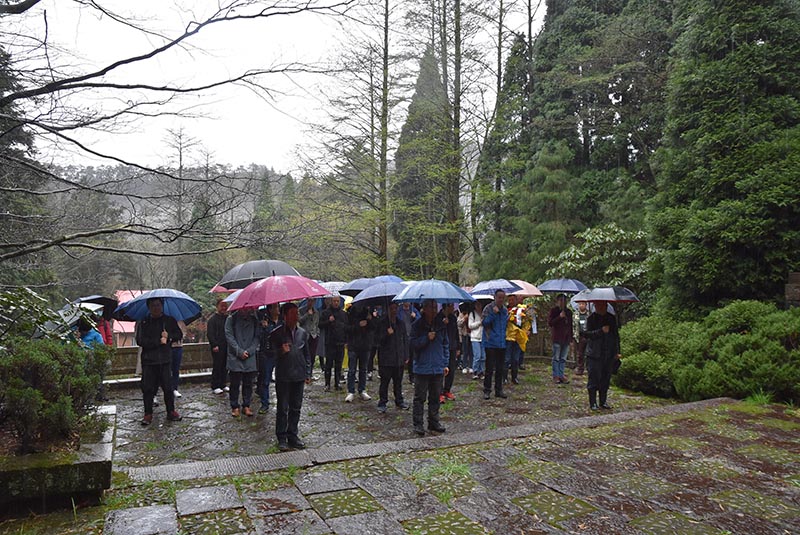 當天的廬山,細雨蒙蒙。廬山植物園干部職工代表向“三老墓”敬獻鮮花,默哀鞠躬,表達對長眠于此的三位先輩的敬意和哀思。廬山植物園副主任魏宗賢表示:三位先輩為我園的建設(shè)發(fā)展,乃至為中國植物園事業(yè)發(fā)展作出了巨大不可磨滅的貢獻,我園干部職工永遠不能忘記他們獻身科學(xué)、報效祖國矢志不移的精神,永遠不能忘記他們艱苦創(chuàng)業(yè)、以園為家不懼艱難困苦的精神,要充分弘揚并汲取我園“三老”精神力量,轉(zhuǎn)化為干事創(chuàng)業(yè)的不竭動力。