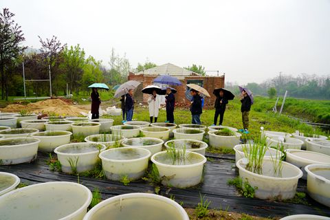 廬山植物園科技合作部部長彭焱松、水生植物組和水陸交錯帶組全體組員陪同參加考察和座談會。