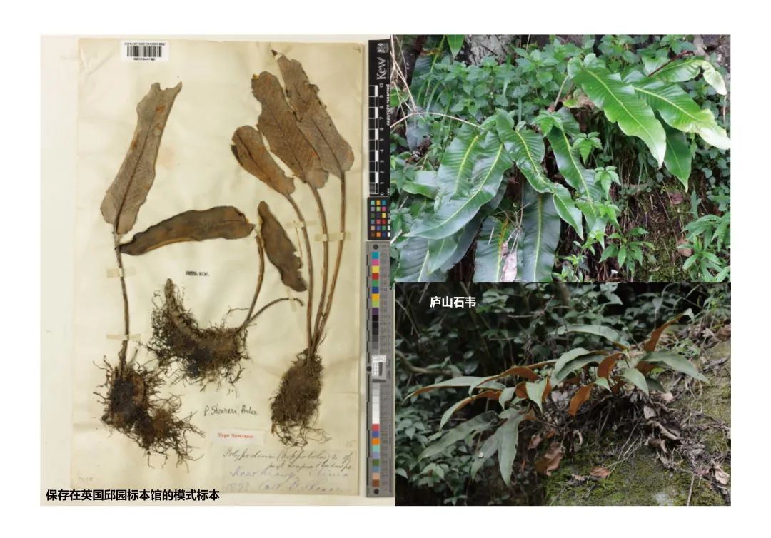 廬山石韋(Pyrrosia sheareri (Baker) Ching)是一種蕨類(lèi)植物。最初由英國(guó)植物學(xué)家,約翰?吉爾伯特?貝克(John Gilbert Baker)于1875年,根據(jù)喬治?希勒在廬山采集的標(biāo)本發(fā)表。貝克當(dāng)時(shí)認(rèn)為該種植物屬于多足蕨屬(Ploypodium L.),后經(jīng)我國(guó)蕨類(lèi)植物學(xué)家秦仁昌研究后,認(rèn)為該種植物屬于石韋屬(Pyrrosia Mirbel)。廬山石韋廣泛分布于我國(guó)的長(zhǎng)江以南地區(qū),常生長(zhǎng)于森林內(nèi)的樹(shù)干或巖石上。