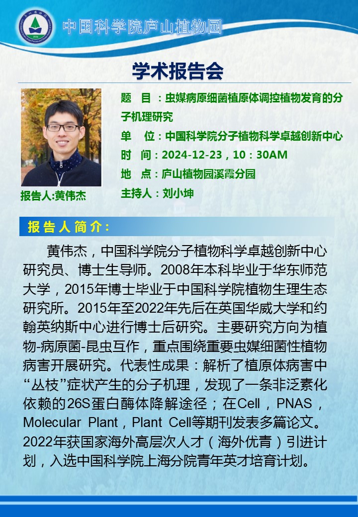報(bào)告人:黃偉杰 研究員,博士生導(dǎo)師