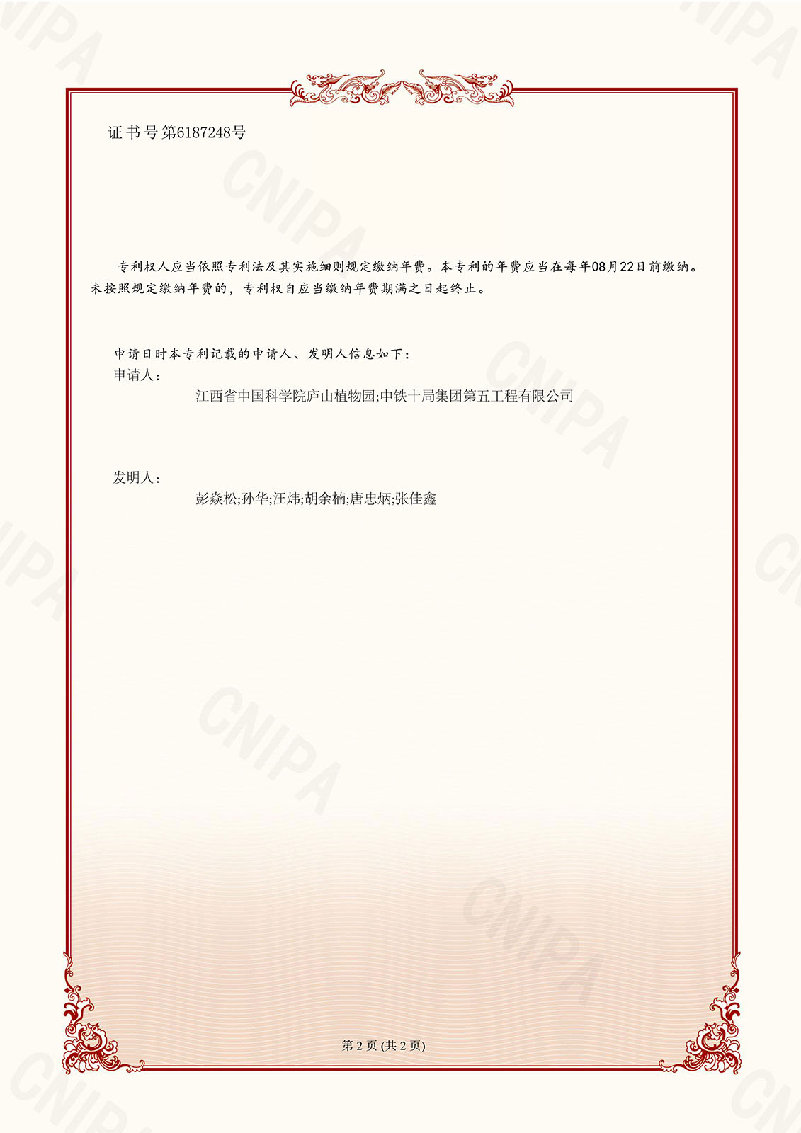 | 專利權(quán)人: | 江西省中國科學(xué)院廬山植物園 中鐵十局集團(tuán)第五工程有限公司 |